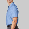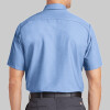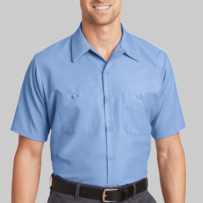 - 65/35 poly/cotton with soil-release finishOpen collar with sewn-in staysMetal collar gripper closureMelamine buttonsTwo button-through pocketsBartacked pencil stall on left pocket