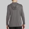 This lightweight hooded pullover locks in color and wicks moisture. It's versatile enough for year-round wear.